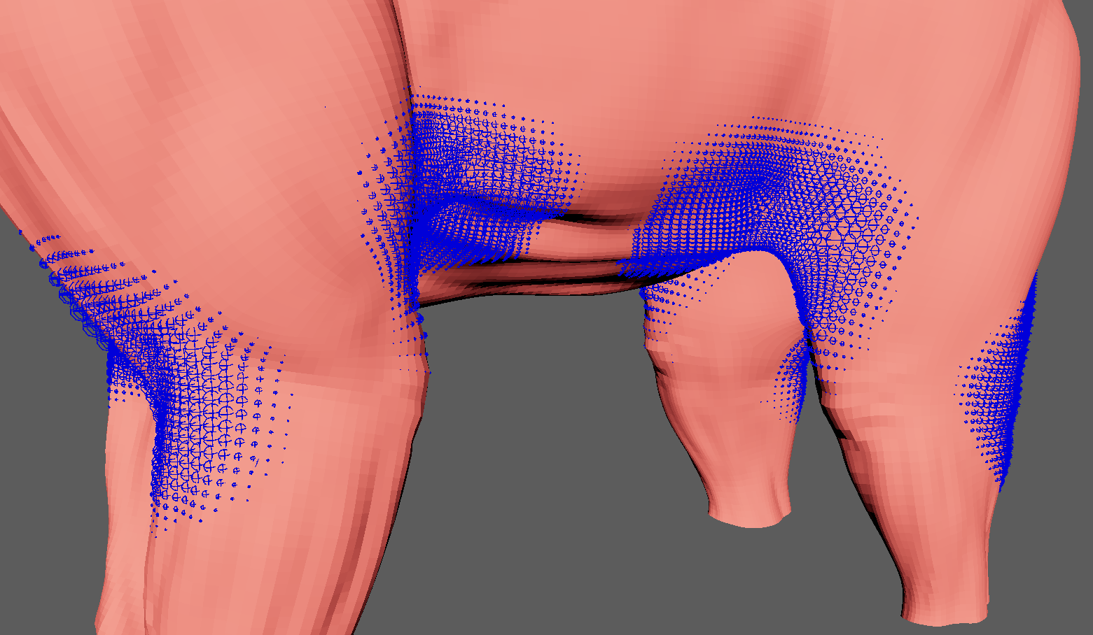- Self Collisions Volume: For each vertex, a sphere will be drawn representing the volume that will collide if its Self Collision Point Radius Multiplier weight and the Point Radius Scale are greater than 0.0.