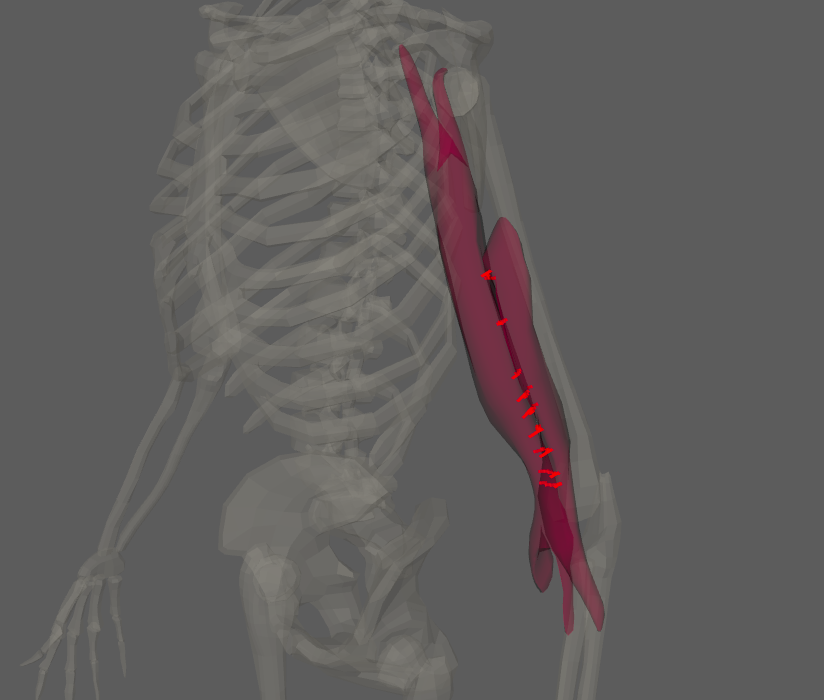 Additionally to all previously mentioned constraints, muscles can have an additional, optional constraint that can define a segment over which the muscle will slide.